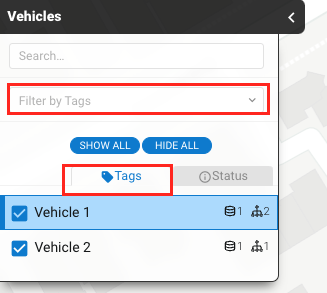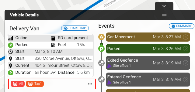 - Vehicles Menu: Tags will appear in multiple locations, including the Vehicles pop-out and the Vehicle Details panel.