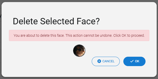 - Select the faces of the identity you would like to delete and click Delete Selected.