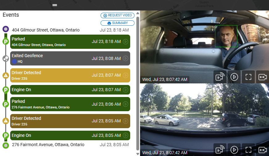 Raven’s cabin-facing camera is AI-powered enabling the ability to perform Facial Recognition. This functionality provides the ability to identify the driver of the vehicle and whether there are any passengers.